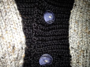 Ribbed Baby Jacket by Debbie Bliss knit up in Vanna's Choice Grey Marble tweed and Caron Simply Soft Black.