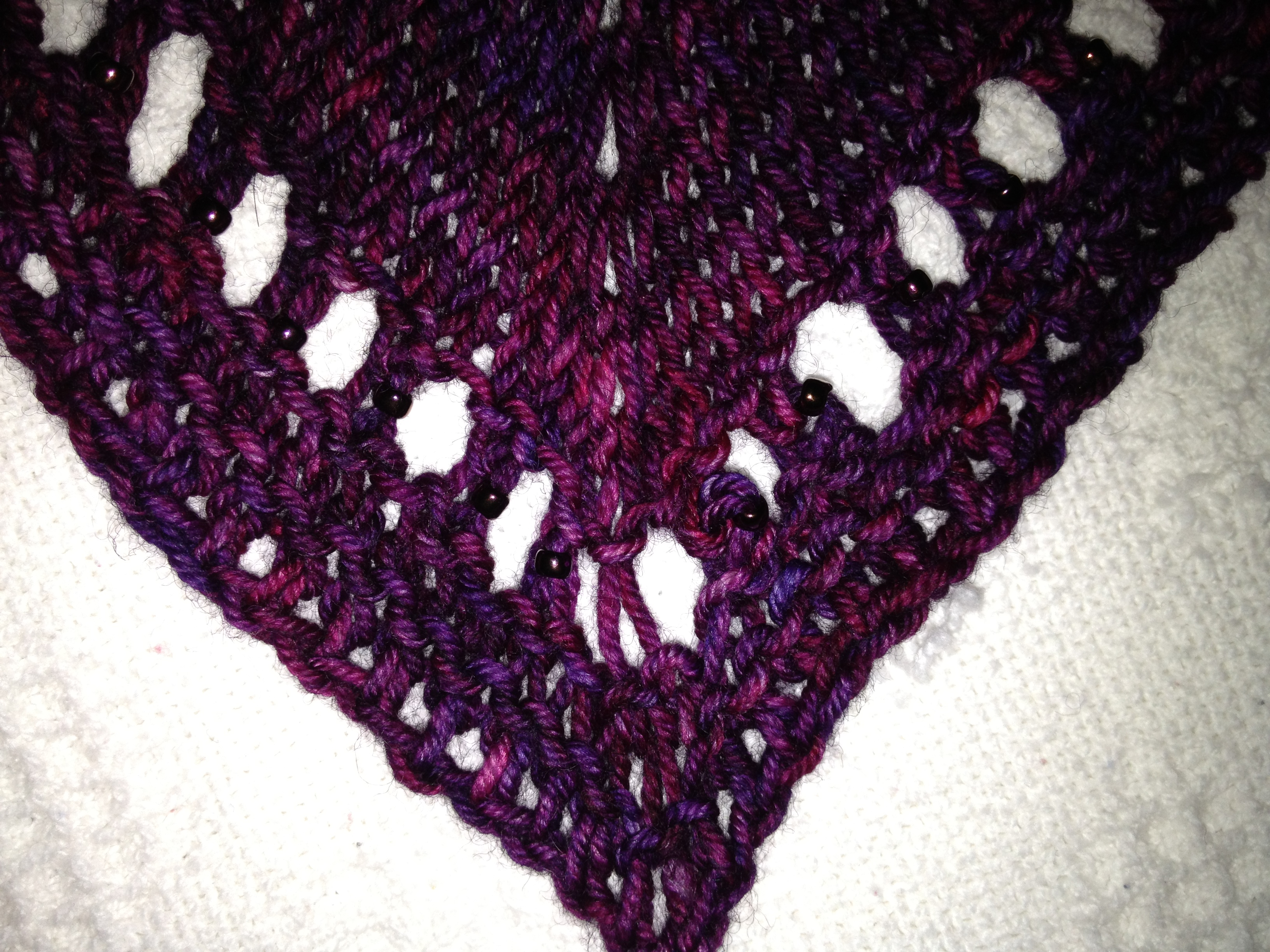 Then I started getting ambitious. A shawl. Though, in my defense, I had heard many people discuss what a quick knit this pattern is and how they finished it in about a week. I didn’t have such luck and slowly lost steam. In the long run, I’m glad I slowed down on it as I wanted to add beads to the edging and make it a little more special. It was my first beaded project and completing the only row of beading took me an entire day’s worth of knitting time.