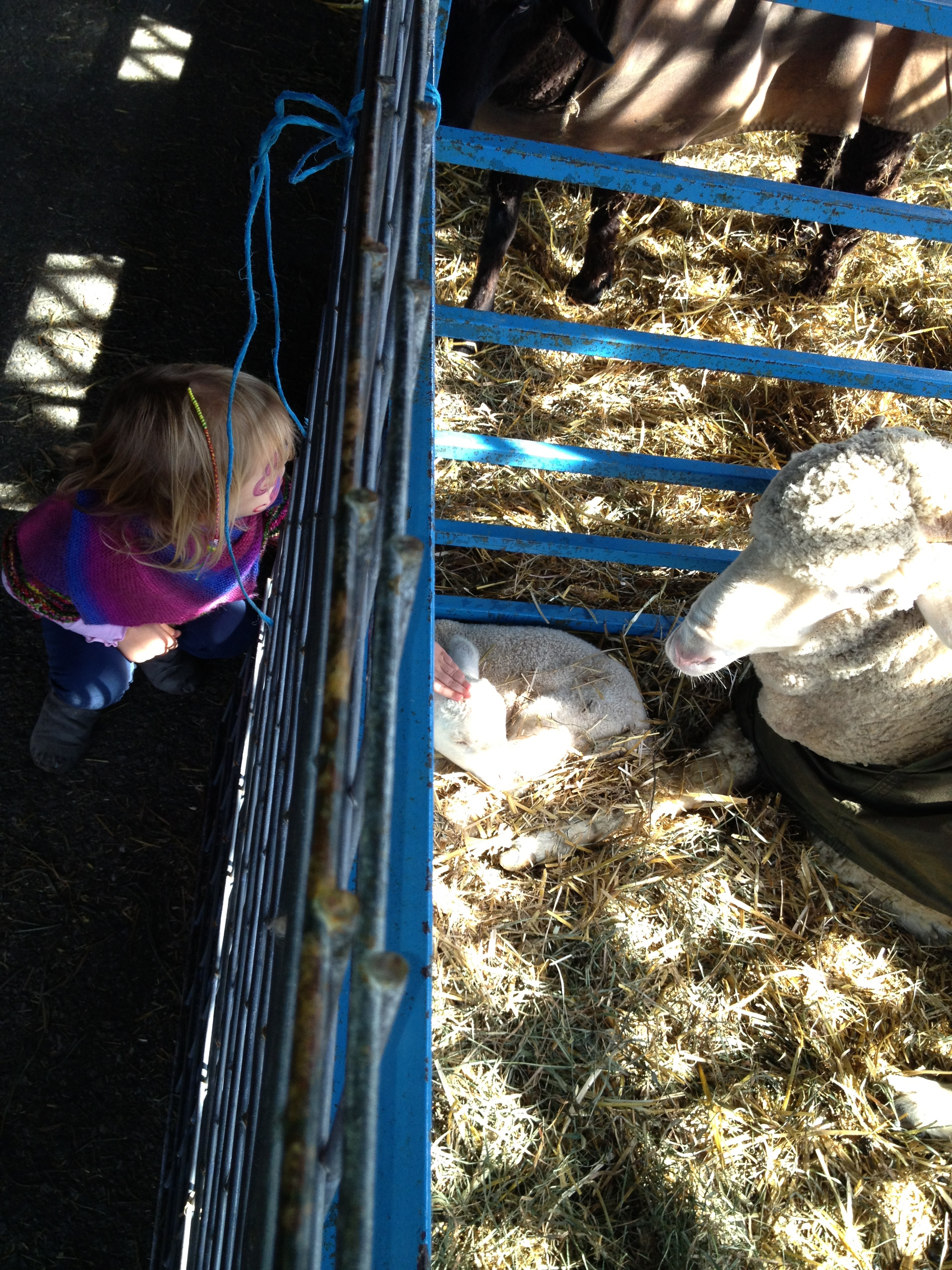We arrived a bit before 8:30 am and though “gates” didn’t open until 9 am… we followed the stream of people right into the fairgrounds. Since I was trying to reign in my purchases this year, we didn’t rush to certain vendors in hopes of beating the crowds. Instead, we strolled through the grounds methodically and leisurely. Until we reached the Jacob Sheep Conservancy booth where I promptly fell in love with a 3 lb 7 oz fleece. That’s right. Before the festival was officially open, I purchased a fleece. Which of course didn’t fit in the stroller we brought to push around M and my purchases for the day. Luckily, my mother is amazing and took the fleece back to the car while M and I watched some sheep judging.