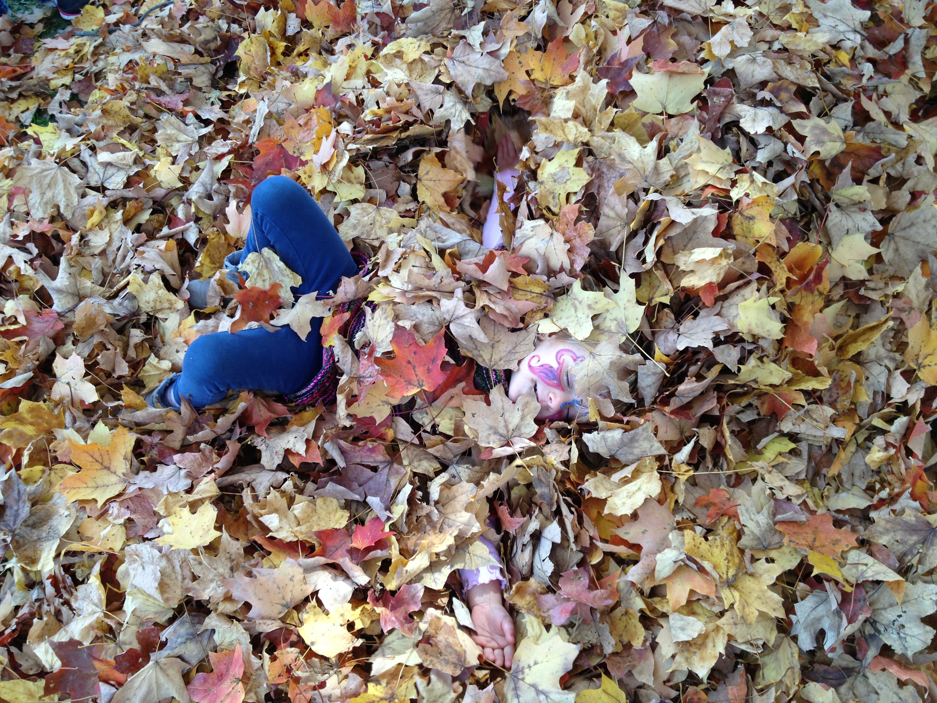 During the Ravelry and Podcaster meet-up she entertained herself, as well as a few unsuspecting passersby, with an enormous leaf pile of fun: