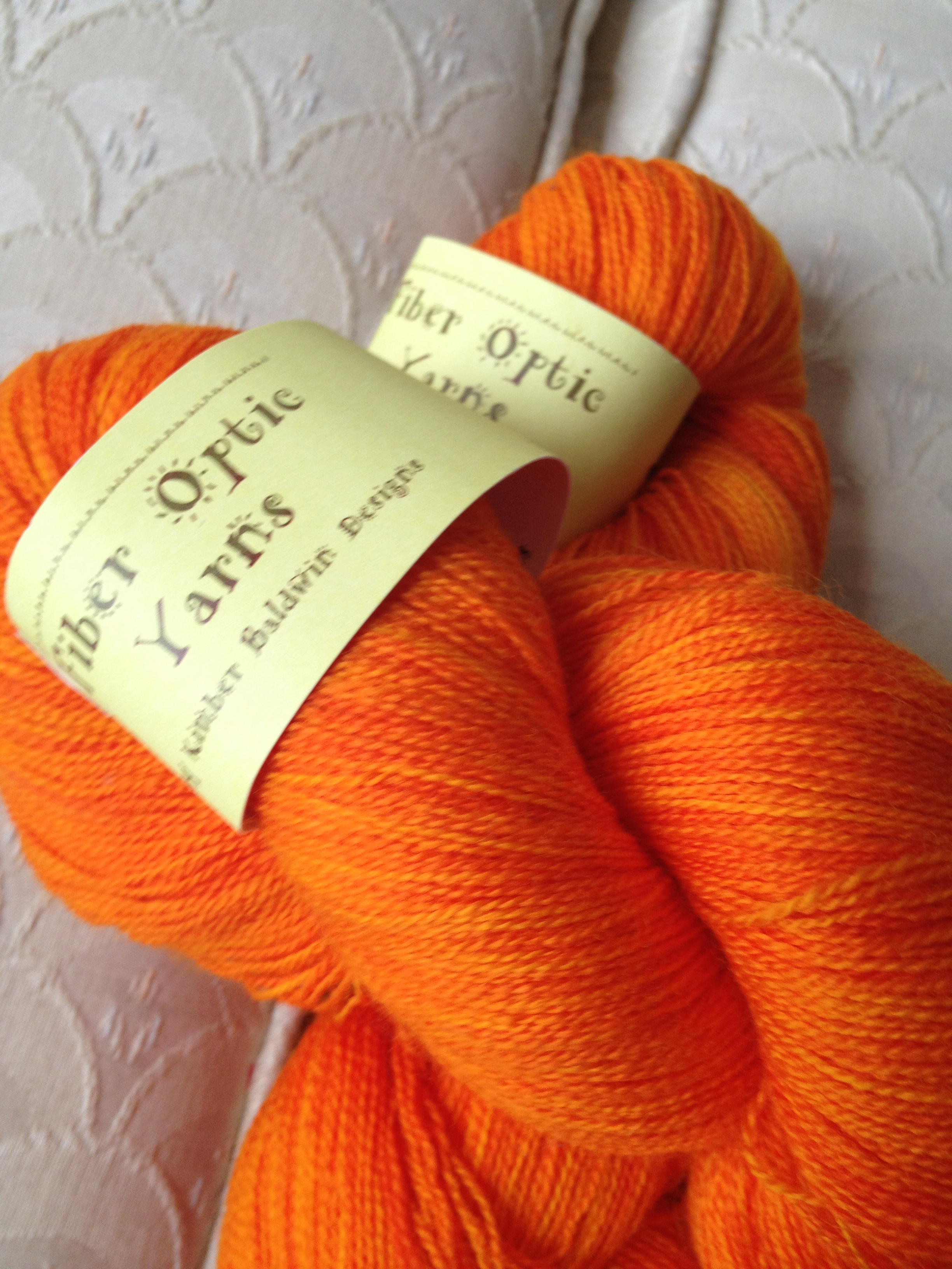 Fiber Optic Yarns two 4 oz skeins (1,000 yds each) of Superwash Merino in the Vitamin C Batik colorway
