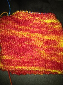 The hat had moved to time-out for a bit when I realized that working up a hat using six double point needles just wasn’t reasonable. It did give me a good excuse to head over to my LYS during my lunch break to pick up some new Addi Turbo Lace needles long enough to Magic-Loop the rest of the hat. I’ve started the decreases and I should finish by tomorrow. The textured pattern does show a bit more in person, but it’s a gift for a friend’s son who adores orange and I actually really like the pooling that the pattern is creating.
